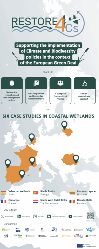 Are you interested in learning more about RESTORE4Cs‘ efforts to engage communities and support EU policies aimed at preserving the ecological and social value of wetlands? Download the poster to explore our plan to develop a digital platform that will enable stakeholders to assess the costs and benefits of restoration efforts and to promote sustainable management
