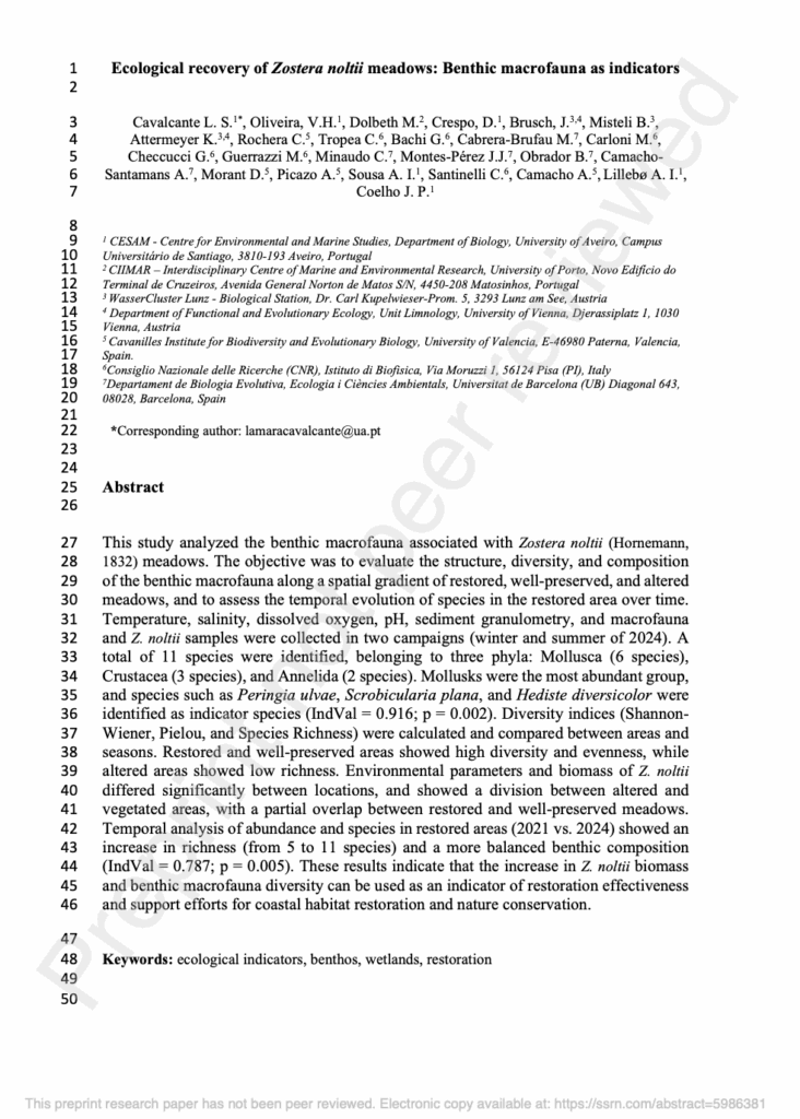 Corticeiro, S., Bras, G., R.F. Oliveira, B., Lillebø, A., & Vieira, H. 2025. SSNR Preprint. https://doi.org/10.2139/ssrn.5351981
