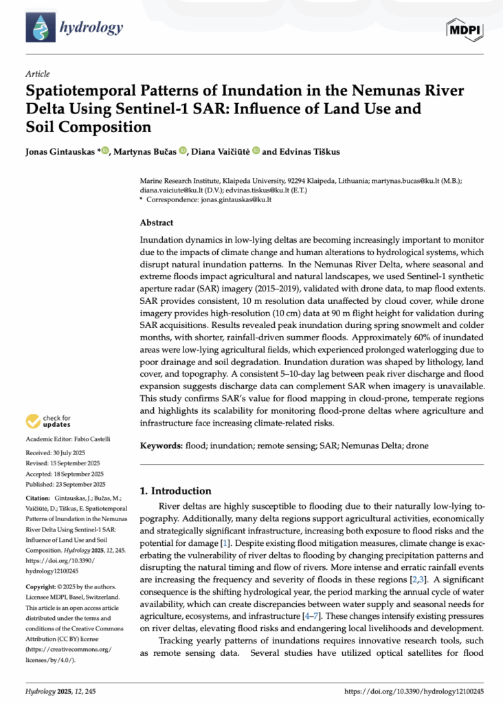 Vaičiūtė, D., Bučas, M., Kataržytė, M., Petkuvienė, J., & Čerkasova, N. 2025. Jūros ir krantų tyrimai 2023: 15-oji nacionalinė jūros mokslų ir technologijų konferencija (pp. 178–180). Klaipėda: Klaipėdos universitetas.